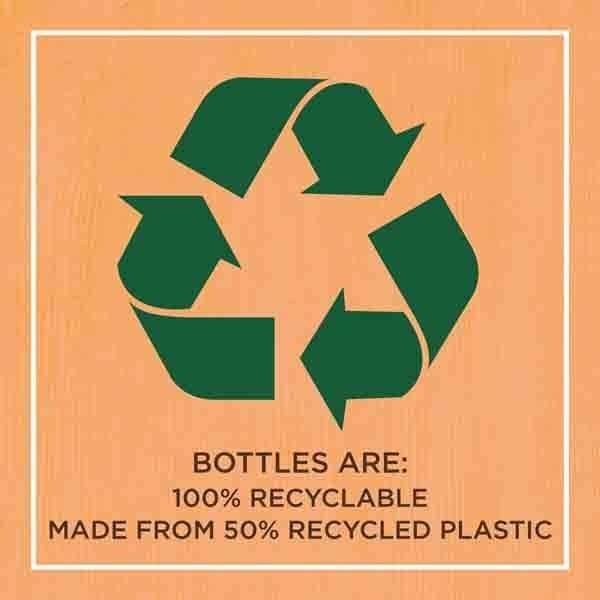 Bottles are 100% recyclable & made with 50% recycled plastic
