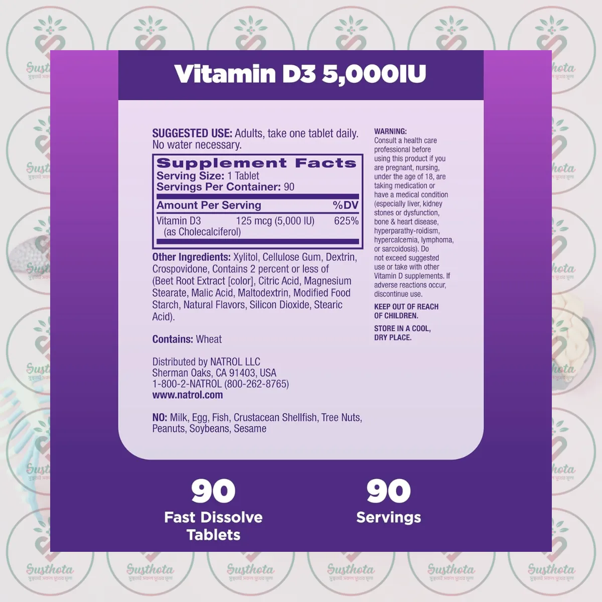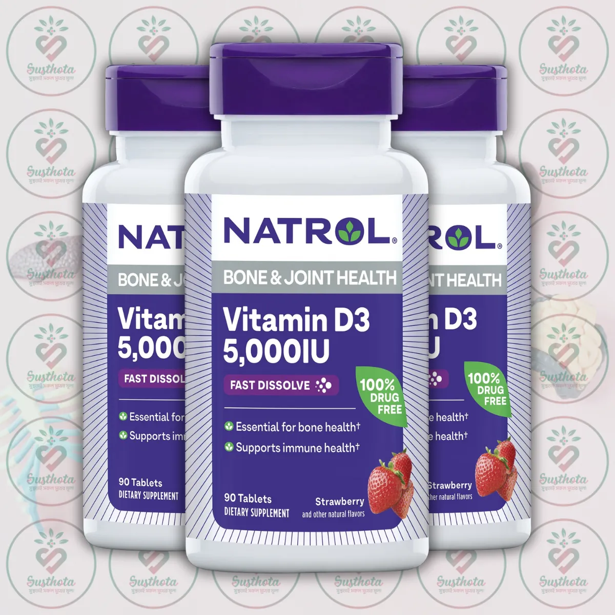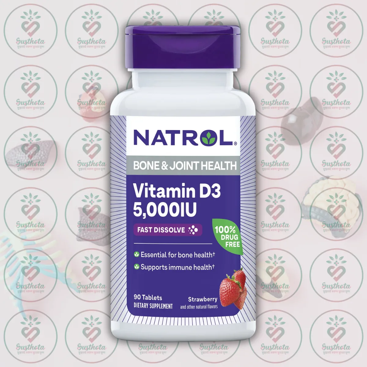 Buy authentic Natrol Vitamin D3 – 5000 IU – 90 Fast Dissolve Tablets in Bangladesh from Daraz. Supports bone, joint & immune health with strawberry flavor. Order now!