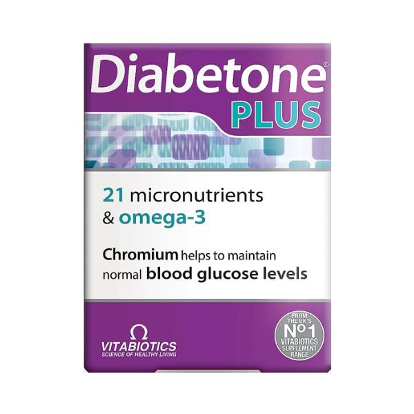 Diabetone Plus is a dual pack that combines our trusted Diabetone formula with a high quality and purity Omega-3 capsule. 22 nutrients including Chromium, which contributes to the maintenance of normal blood glucose levels and B Vitamins. Contains responsibly-sourced Omega-3 Fish Oil. 28 tablets and 28 capsules in one dual pack.